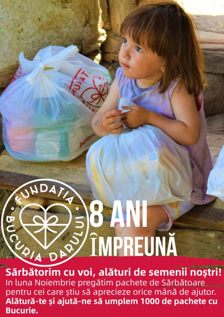 Acum, când împlinim 8 ani, vrem să le oferim ceva mai mult decât în fiecare zi. O surpriză de care să se poată bucura cu toată inima. Să înțeleagă că toată munca din spate, tot ajutorul și toți oamenii se adună, aici, în HUB-ul Bucuriei pentru ca lor să le fie un pic mai bine, povara ceva mai ușoară.