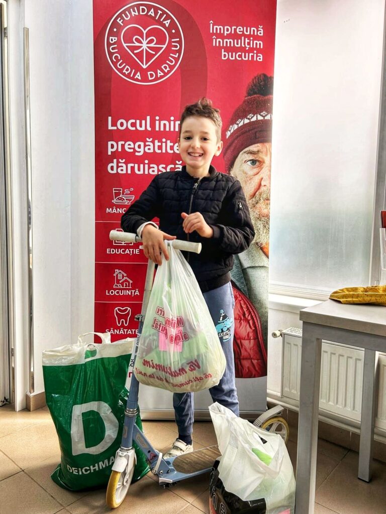 Un băiețel de clasa a treia, cu privirea plină de viață, a venit zilele trecute pe trotineta lui plină de haine pentru alți copii. Fiecare piesă de îmbrăcăminte era ordonată și etichetată cu grijă, pregătită să ajungă acolo unde este cea mai mare nevoie. „Du-le și altora, că e nevoie!”, i-a spus mama, iar el a făcut-o fără să clipească.Hainele donate de voi nu sunt doar un simplu cadou – ele sunt o șansă de a aduce zâmbete pe chipurile celor care au mai puțin:33,8% dintre copiii din România (aproape 1,5 milioane) trăiesc în risc de sărăcie sau excluziune socială, conform datelor Eurostat din 2024. Accesul lor la îmbrăcămintea potrivită este o reală provocare.
