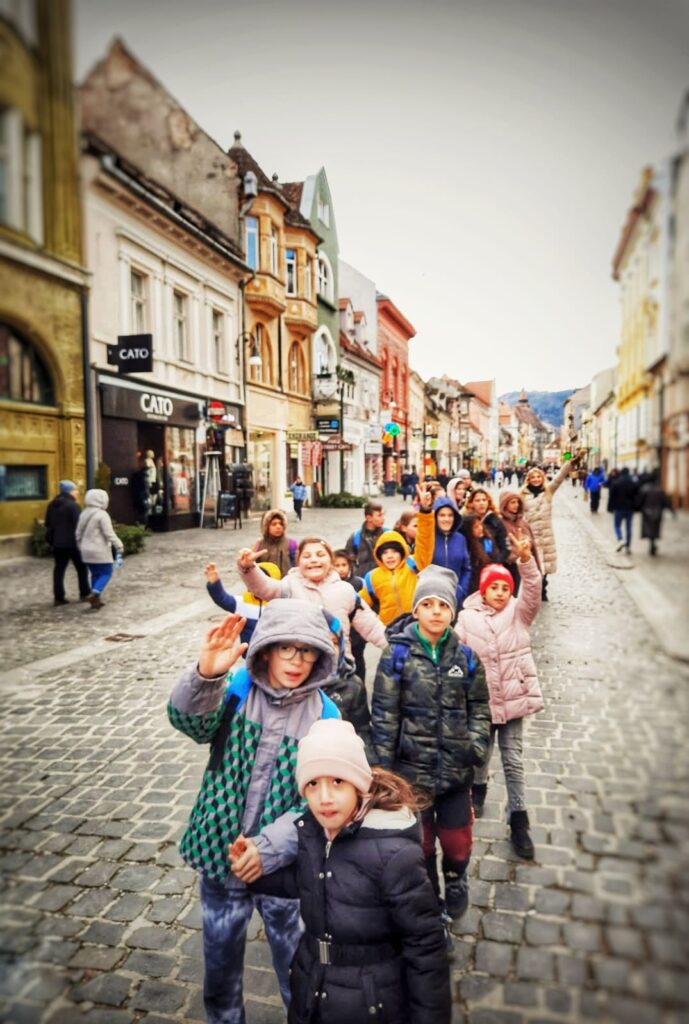 Astăzi am luat la pas Brașovul. Am ieșit în „familie extinsă” și am mers în centru. Am luat și masa în oraș și ne-am bucurat de jucăriile primite la Happy Meal.