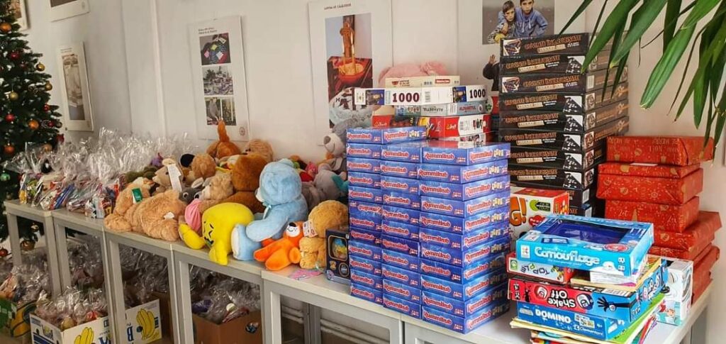 Astăzi ne-am văzut cu un alt Moș, căruia i-au umplut desaga cu dulciuri prietenii noștri de la Mega Image și iar cu plusuri și jucării Corona Brasov și Asociatia Culturala Fanzin.