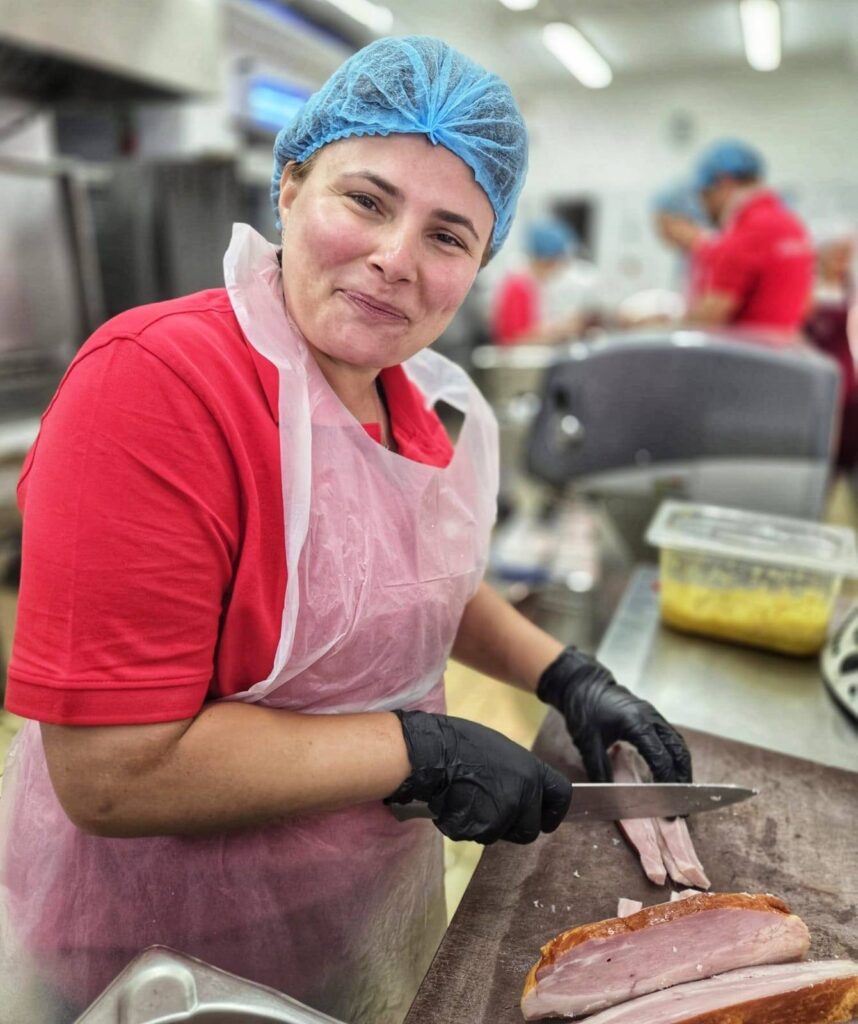 N-a fost doar o plimbare, ci o adevărată întâlnire între generații. „N-am mai râs așa de ani. Îmi era dor de viață”, ne-a mărturisit un senior, iar o colegă a șoptit cu emoție: „Te simți bine când faci bine.” În același timp, alți voluntari curățau geamuri – 110 metri de geam șters, atât de limpede că aproape s-au văzut prin ele inimile celor care au muncit. În cămară, stocurile s-au ordonat după termenul de valabilitate – un gest mic, dar uriaș când ai sute de guri de hrănit. Cu mâinile lor, cu timpul lor, cu zâmbetul pe buze, au pregătit 300 de pachete cu alimente pentru sate. Iar binele, în cazul echipei E.ON, n-a însemnat doar forță de muncă, ci și susținerea integrală a tuturor costurilor implicate – de la materia primă pentru gătit, la vopsea, dale, transport și excursii.
