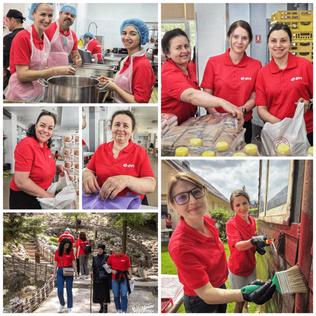 Trei saci curățați cu stoicism, ca-n armată. În bucătărie s-a râs, s-a ras cașcaval, s-au curățat mere pentru brutărie, s-au călcat fețe de masă și șorțuri cu grijă – ca pentru o cină specială. La căsuța educației, opt voluntari E.ON, alături de Cristian Bularcă, au vopsit un garaj și au așezat doi paleți de dale, punând la punct jumătate de curte și transformând jumătate de zi într-o lecție de implicare. În paralel, 19 colegi E.ON au pornit într-o excursie împreună cu 33 de seniori, spre Mănăstirea Șinca Veche.